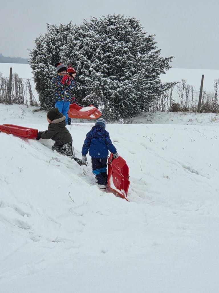 Konečně se děti ve školce dočkaly pořádné sněhové nadílky.