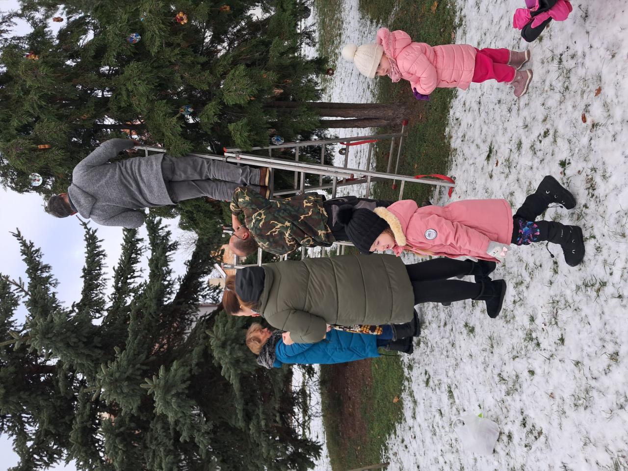 Na návsi za pomoci Obce Krásný Dvůr děti zdobily stromeček.