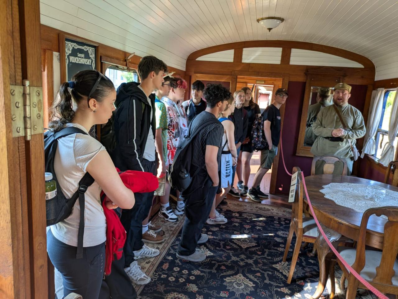 Osmáci absolvovali komentovanou prohlídku Legiovlaku.