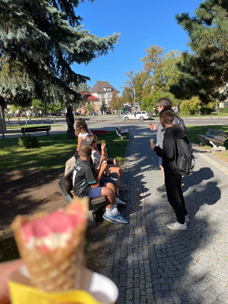 Žáci se pak na výstavě snažili odpovědět na otázky o českém králi, které zajímaly jejich rodiče. Za skvělý výkon a spolupráci poté přišla také zasloužená odměna ve formě točené zmrzliny.🍦